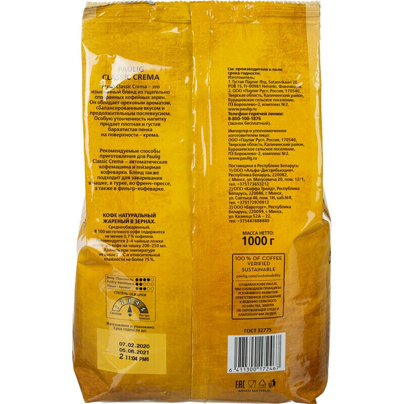 Кофе Paulig Classic Crema в зернах 1кг (17534)