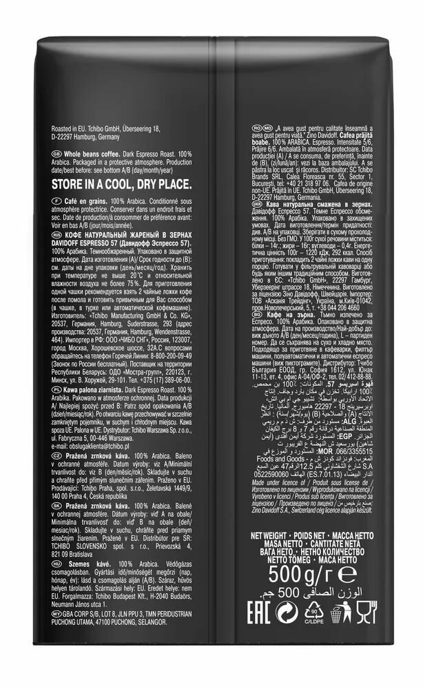 На сегодняшний день товар «Кофе Tchibo Davidoff Espresso 57 в зернах 500гр (491538)» можно купить с кешбеком в 1 магазине: Яндекс.Маркет