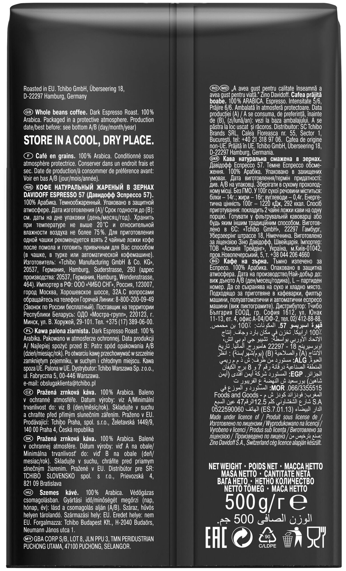 Кофе Tchibo Davidoff Espresso 57 в зернах 500гр (491538)