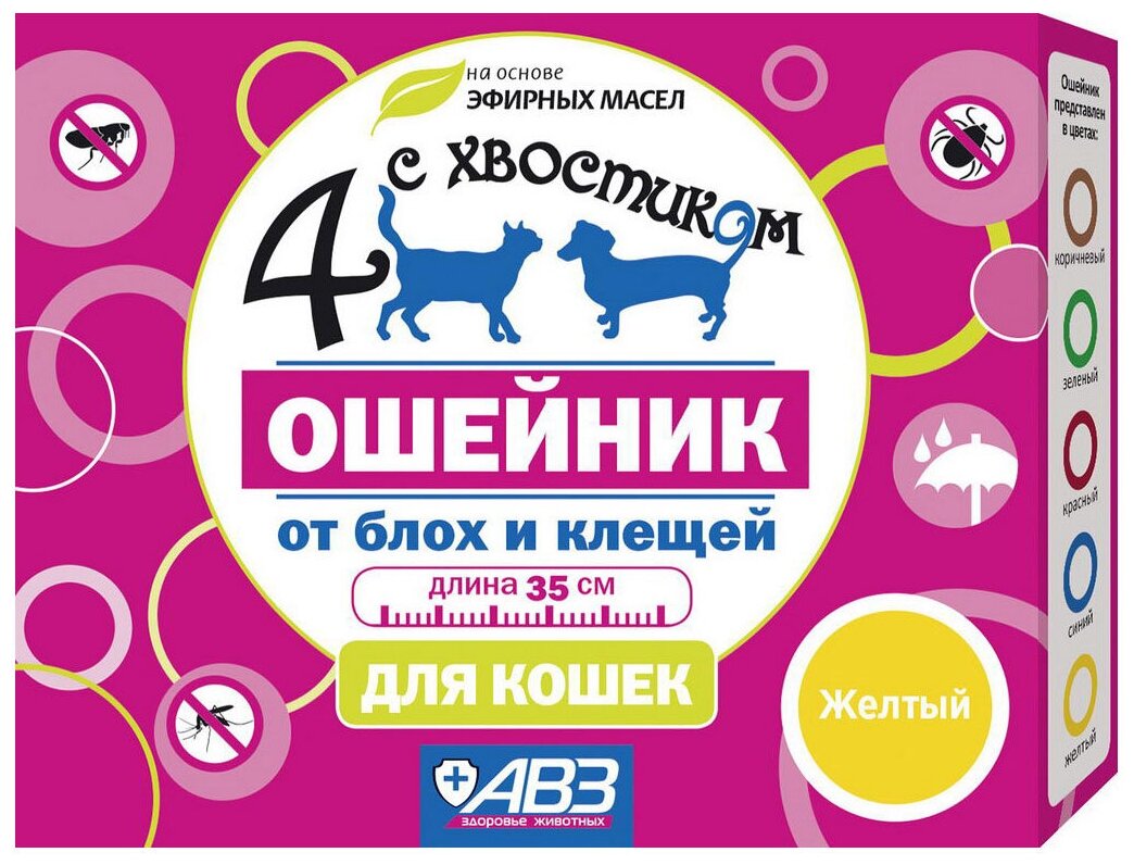 Ошейник для кошек 4 с хвостиком от блох и клещей желтый 35см НВЦ Агроветзащита С.-П. ООО