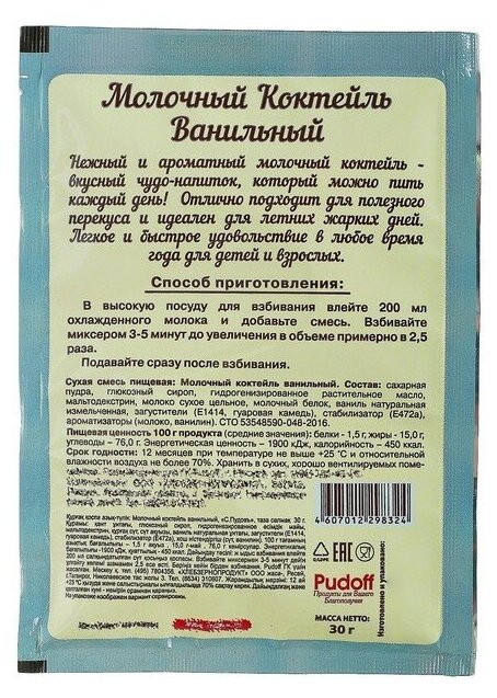 Сервис сравнения цен СкидкаГИД предлагает сравнить цены на товар «Сухая смесь С.Пудовъ Молочный коктейль Ванильный 30г Хлебзернопродукт»