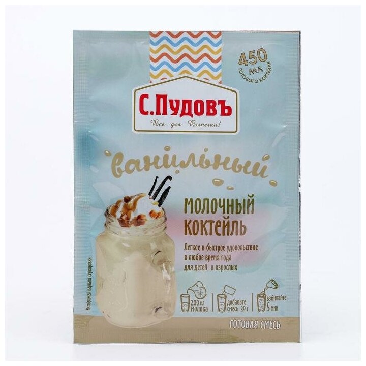 Сухая смесь С.Пудовъ Молочный коктейль Ванильный 30г Хлебзернопродукт