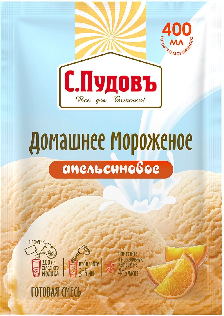 Сухая смесь С.Пудовъ Домашнее мороженое Апельсиновое 70г Хлебзернопродукт