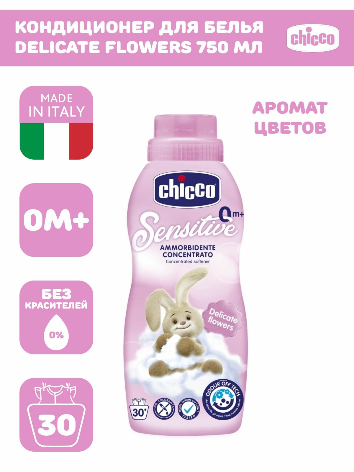 На сегодняшний день товар «Смягчитель для тканей Chicco Sensitive Delicate Flowers 750 мл (05876.10)» можно купить с кешбеком в 1 магазине: Яндекс.Маркет