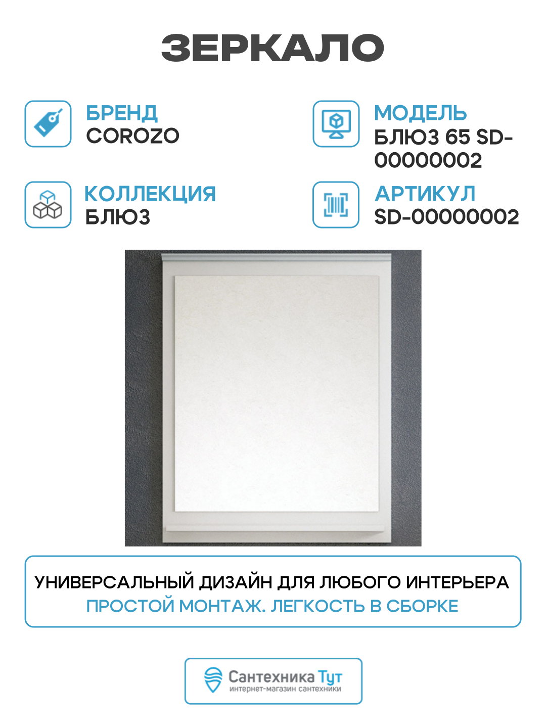Зеркало с полкой Corozo Блюз 65. При производстве изделий использутся влагостойкая высококачественная МДФ и ЛДСП премиум-класса "Lamarty", что обеспечивает превосходный внешний вид и значительно увеличивает срок эксплуатации. Пониженный класс содержания химических веществ в ЛДСП делает мебель максимально экологичной.