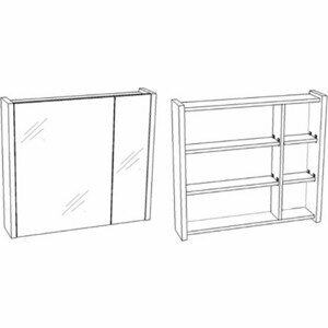 | Дополнительная информация | Имеет 2 двери с зеркалами на 500 мм и 192 мм. Боковины из ЛСДП 26 мм толщиной. У дверей есть свисы сверху и снизу - с помощью них она открывается. Позади дверей - вкладные полки. Универсальное, его можно повесить большой дверью справа или слева. |