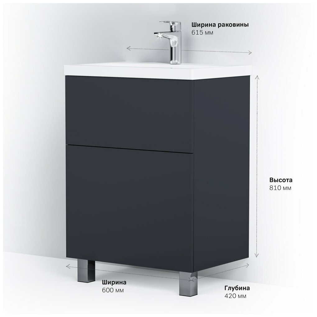 База под раковину M90FSX06022GM32 GEM, напольная, 60 см, 2 ящика push-to-open, цвет графит матовый. Зеркало, раковина заказываются отдельно (смотрите дополнительную комплектацию).