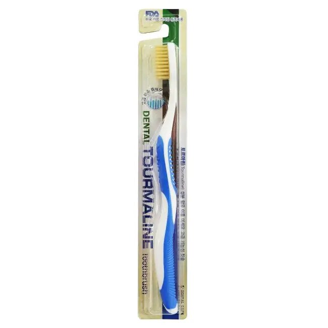 Зубная щетка разработана по новейшей технологии с добавлением турмалина, который генерирует отрицательно заряженные ионы и дальние инфракрасные лучи, препятствует размножению бактерий и способствует улучшению кровообращения в деснах. Щетина, производимая с добавлением турмалина, сохраняет его действие до окончания срока годности зубной щетки. Тонкие мягкие заостренные верхние щетинки глубоко проникают в труднодоступные для обычных зубных щеток промежутки между зубами. Закругленные нижние щетинки средней жесткости прекрасно очищают зубную эмаль и не повреждают ее. Благодаря чистке зубов такими щетками улучшается кровообращение, массируются десны, повышается стойкость полости рта к инфекциям. Щетка способствует долговременному сохранению ощущения чистоты и свежести. Производится по запатентованной технологии. Антибактериальный эффект подтвержден лабораторными испытаниями. Получены сертификаты FDA и ISO. Жесткость длинных щетинок щетки – мягкая. Жесткость коротких щетинок щетки – средняя. Подходит для людей со слабыми деснами.