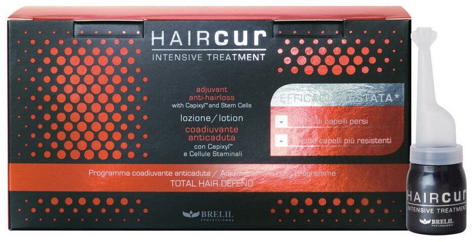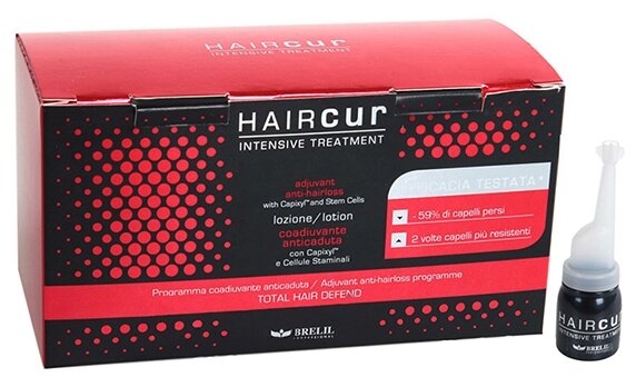 Лосьон интенсивного действия Haircur Anti-Hair Loss на основе стволовых клеток растительного происхождения (малины) и комплекса Capixil. Лосьон борется с самыми распространенными причинами выпадения волос. Защищает волосы от преждевременного старения и последствий стресса. Стимулирует работу секреции сальных желез, уменьшает её активность. Освежает кожу головы.