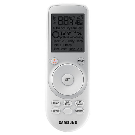 Инфракрасный пульт Samsung (Самсунг) идеально подходит для кассетных внутренних блоков кондиционеров Samsung серии 360. Круговой регулятор позволяет настраивать направление подачи и мощность воздушного потока. Для максимально удобного контроля рабочего состояния системы на пульте установлен большой дисплей.