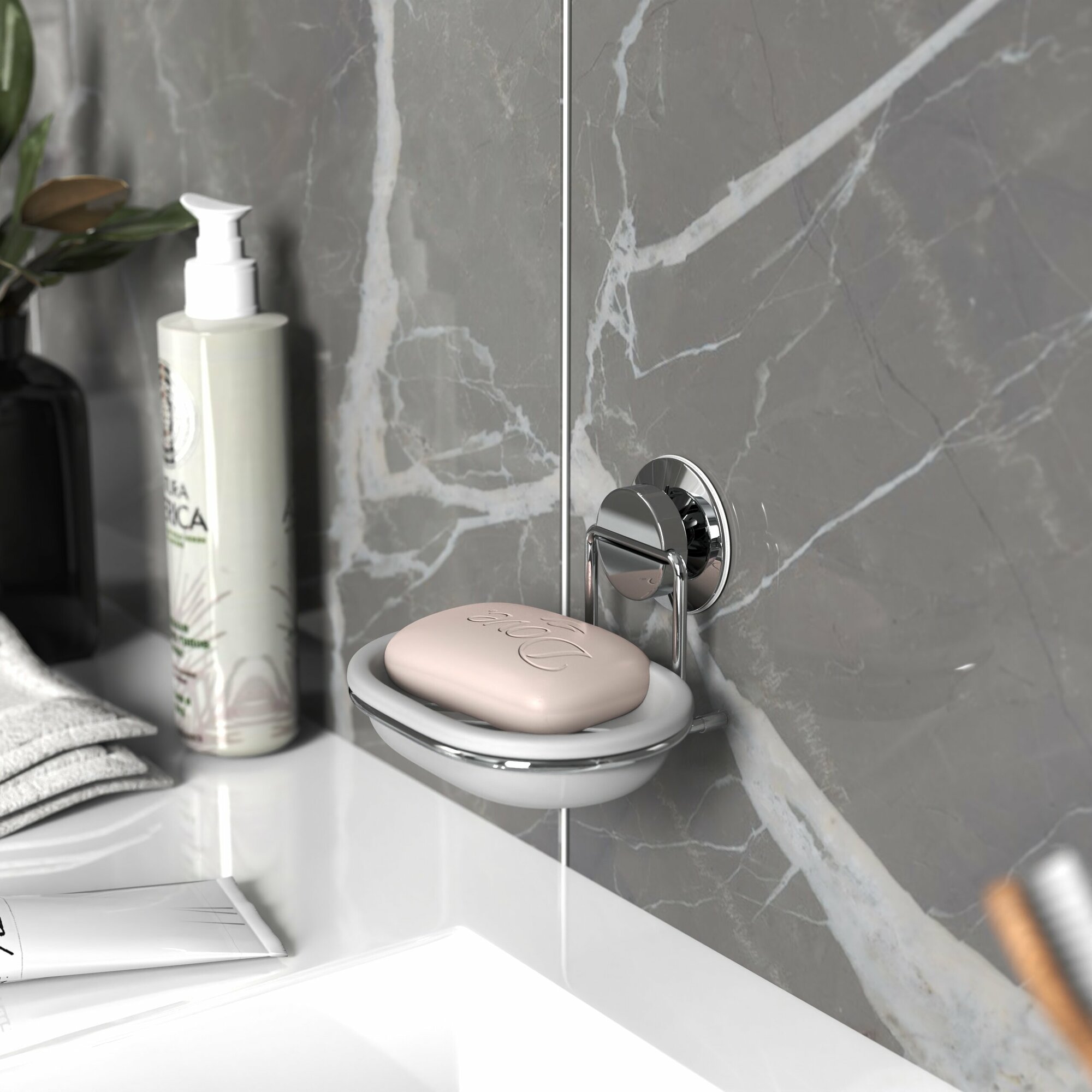 Система push позволяет прочно зафиксировать аксессуар на стене, поэтому вам больше не придется ловить ускользающую мыльницу и искать, куда закатилось мыло. Пластиковая чаша и хромированный держатель не подвержены коррозии, а значит аксессуар будет долго украшать вашу ванную.