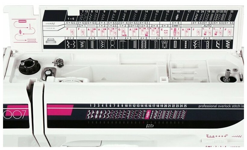 | Лапки в комплекте | Для декоративных строчек, Для петли-полуавтомата, Для подрубки, Для пришивания молнии, Оверлочная, Универсальная |