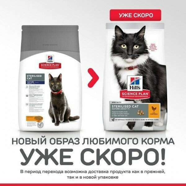 перешли на данный вид корма с Hills/Sterilized Cat/до 6 лет(тунец, курица). Проблем не возникло, кошка сразу стала есть данный корм. По составу от прошлого вроде не сильно отличается, но раз написано что этот корм от 6 лет