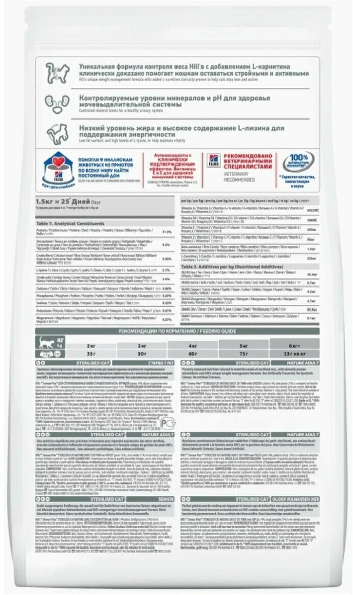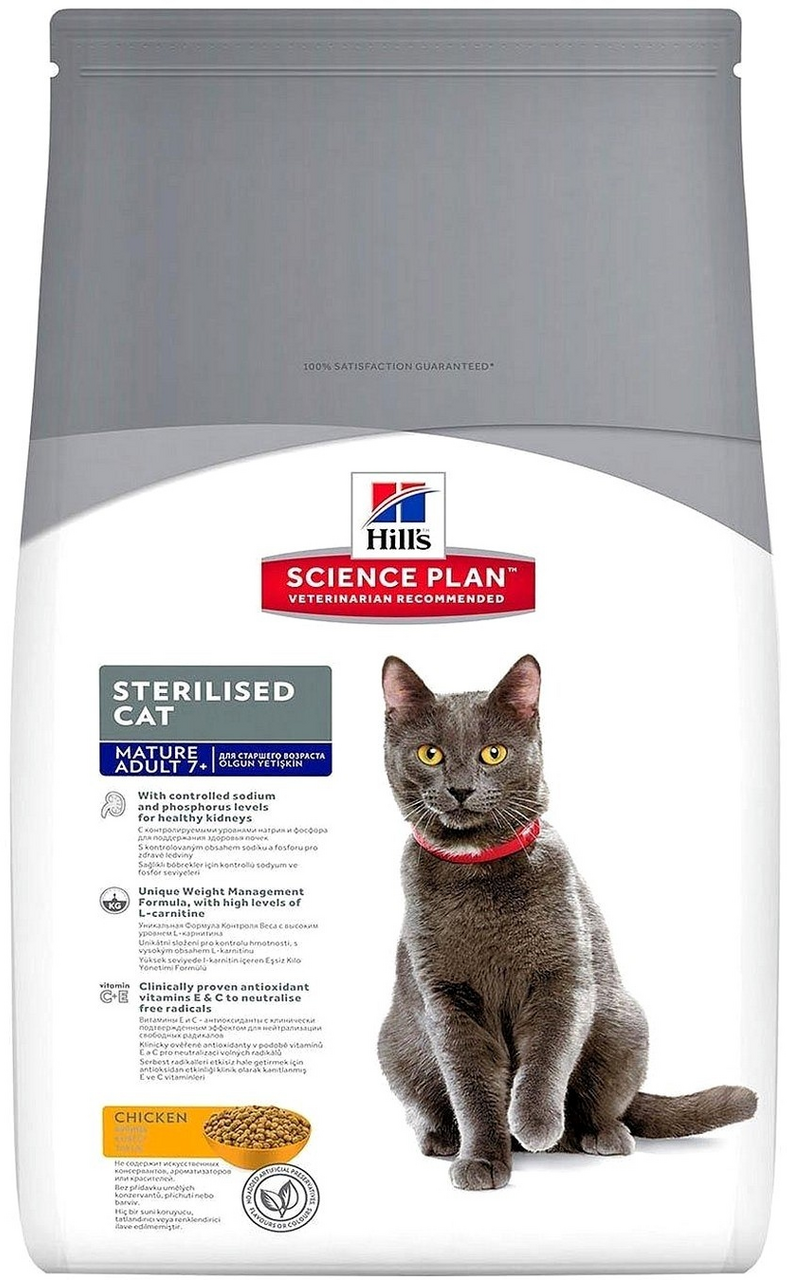 На сегодняшний день товар «Сухой корм для стерилизованных кошек с 7 лет Hills Science Plan курица 15 кг HILL'S» можно купить с кешбеком в 1 магазине: Яндекс.Маркет