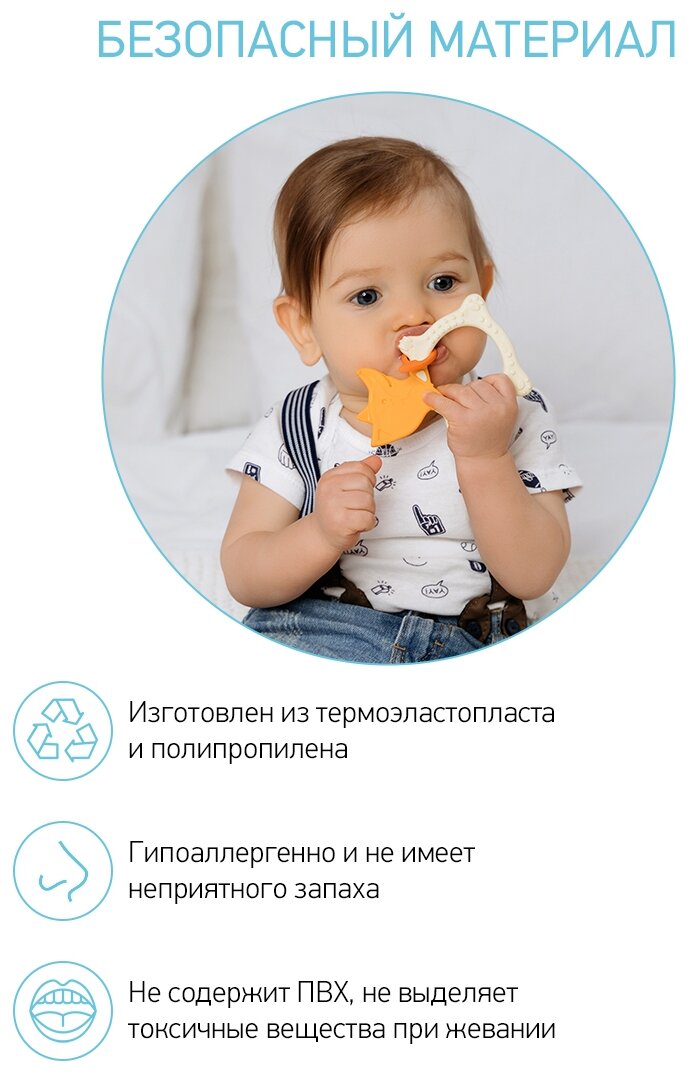 Прорезыватель сделан из безопасных гипоаллергенных материалов –