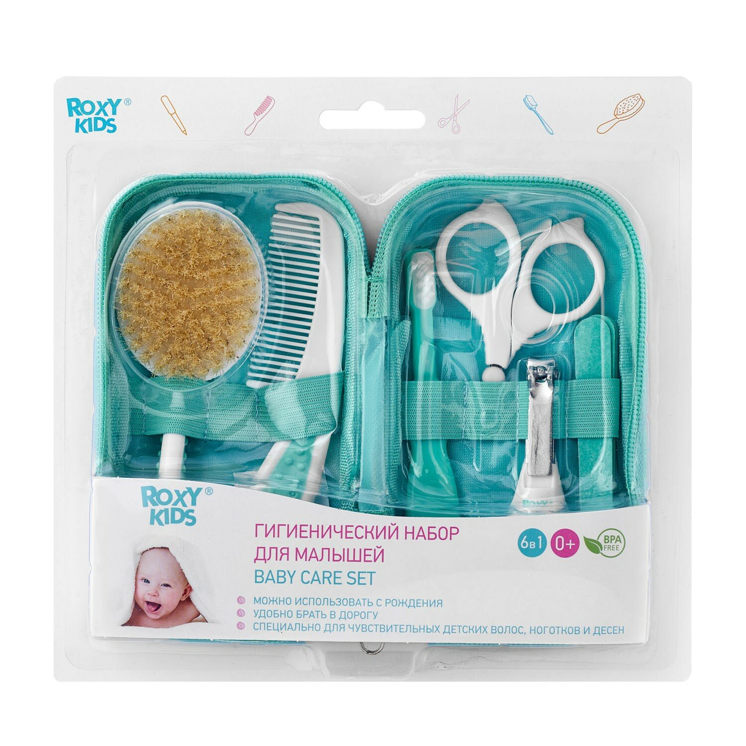 Набор для ухода за новорожденным от ROXY-KIDS за грудничком с первых дней жизни. Его можно компактно хранить в футляре и брать куда угодно. В наборе есть щетка для волос с натуральной щетиной, расческа, маникюрные ножницы, щипчики для ногтей, 4 пилочки, зубная щетка. Массажная щетка подходит для вычесывания себорейных чешуек из волос младенца. Она улучшает кровообращение кожи головы и стимулирует волосяные луковицы, ускоряя рост первых волос малыша. Расческа с закругленными зубцами не царапает нежную кожу головы и обеспечит массажный эффект. Ножницы с закругленными тонкими лезвиями, щипчики из нержавеющей стали и пилочки безопасны и сделаны специально для мягких и маленьких ноготков новорожденных. Подстригайте ноготки, когда они отрастают на 1 мм, иначе малыш может себя поцарапать. Миниатюрная зубная щетка из деликатного нейлона поможет ухаживать за самыми первыми зубами и снять зуд при прорезывании.