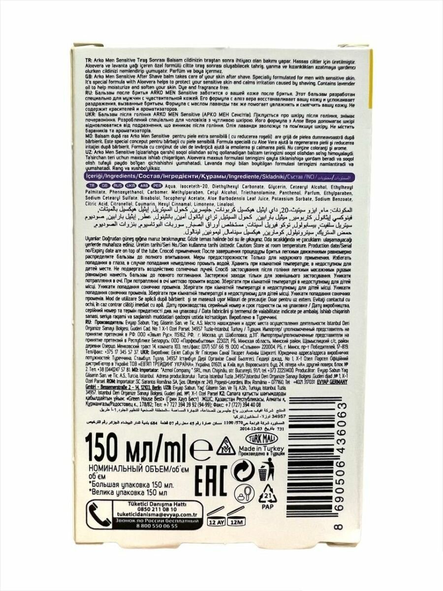 Бальзам после бритья ARKO Men Sensitive заботится о чувствительной коже после бритья благодаря специальному охлаждающему компоненту.