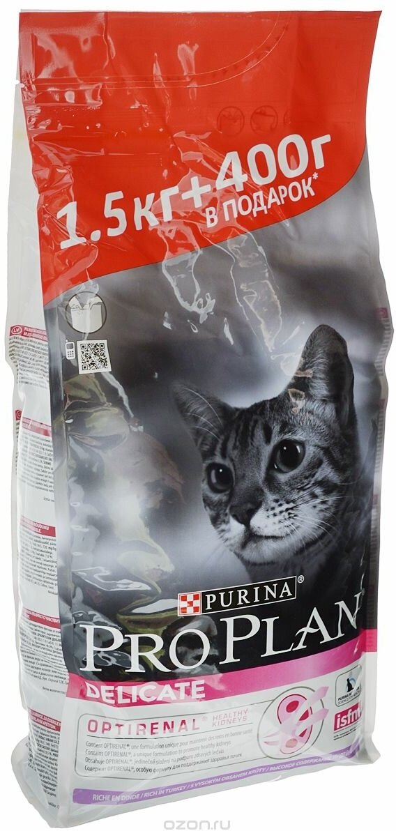 Сухой корм Purina Pro Plan Delicate для кошек с чувствительным пищеварением и привередливых к еде с индейкой 1.5кг + 400гр Purina ProPlan (12400594)