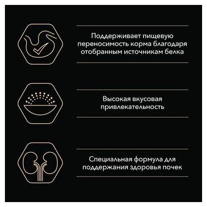 Содержит OPTIRENAL® — специальное сочетание питательных веществ, включая антиоксиданты, аргинин и омега-3 жирные кислоты. Имеет высокое содержание белков (40%) и витаминов Е и С. Формула с ограниченным числом белков и высококачественными ингредиентами. Приготовлен из высококачественных ингредиентов со специальной приятной оболочкой гранул.
