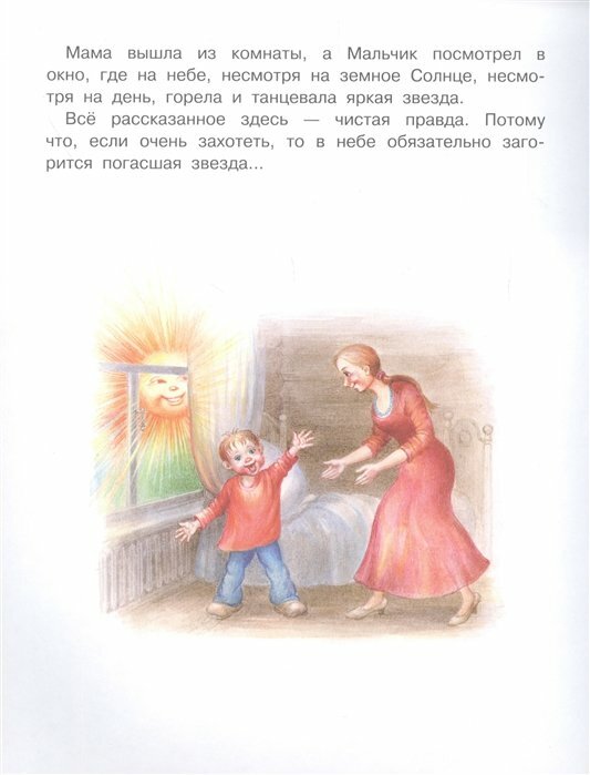 Впечатление от книги осталось двояким. Ребенку постарше понравилась сказка про Лешего, а ребенку помладше-про Волка и Телёночка. По тексту периодически возникали вопросы- Ваня подошёл, Леший побежал, бегал-бегал и тут опять Ваня подошёл... А где он до этого был?! Не ясно. В "Если очень захотеть" всё свалено в одну кучу- и Антошка, и звезды, и мама, которая позволила своего малыша выгнать на мороз. По моему мнению, странновато. В "Живой игрушке" начало показалось не совсем детским: " Папа, конечно же, тоже был, но где именно он был, неизвестно"