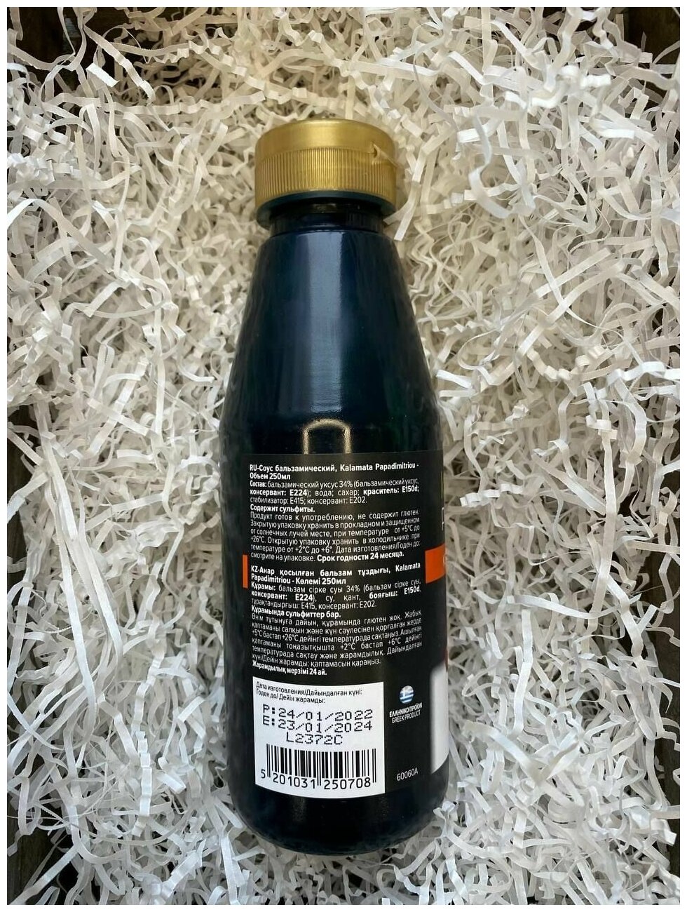Соус бальзамический Kalamata PAPADIMITRIOU обладает богатым кисло-сладким вкусом, кремовой текстурой и нежным ароматом.Идеальное решение, чтобы внести разнообразие и придать привычным блюдам необыкновенный привкус. Этот бальзамический крем - идеальный выбор для, кто хочет вывести вкусовые качества своих горячих блюд, салатов и даже десертов на новый уровень. Бальзамический соус Kalamata PAPADIMITRIOU станет Вашим секретным ингредиентом для приготовления карамелизированного лука, гамбургеров или колбас.Первое упоминание об этой приправе относится к 1046 году, когда она была преподнесена в подарок будущему королю Генриху II. Долгое время она считалась аристократическим продуктом и была доступна только богатым людям благородного происхождения. Уксус происходит из итальянской провинции Модена. Изначально его применяли исключительно в лекарственных целях, отсюда и его название «бальзамический» – использовавшийся для приготовления бальзамов.Кислотность: 1,8%-2,2%