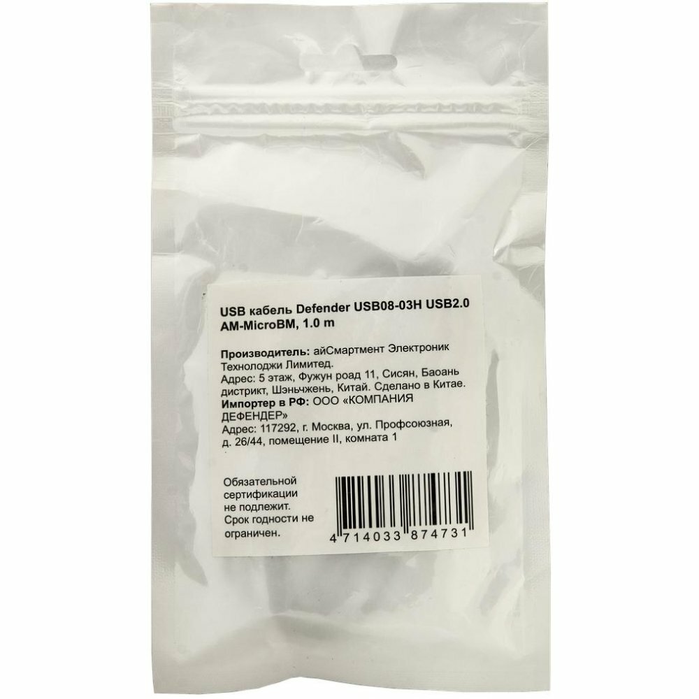 Абсолютно все современные компьютеры и цифровые, мобильные гаджеты оснащаются универсальным USB интерфейсом. Этот тип соединения предназначается для зарядки девайсов, и передачи информации между подключенными друг к другу гаджетами. Дата кабель, более известный как USB кабель, обеспечивает значительно большую скорость безопасной передачи данных, чем тот же Bluetooth модуль или Wi-Fi соединение.Несмотря на универсальность USB интерфейса, существуют разные типы дата кабелей, которые отличаются между собой как способом применения, так и функциональностью. Дата кабель Defender USB08-03H USB 2.0 - Micro USB, 1.0m (87473) - кабель предназначен для подключения к ПК смартфонов, мобильных телефонов, планшетов, цифровых фотокамер, навигаторов, видеорегистраторов и других устройств.USB-кабель поддерживает спецификацию High Speed USB 2.0 - скорость передачи данных до 480 Мбит/сек (60 МБ/сек).Высокое качество коннекторов.Кабель выполнен из высококачественных и износостойких материалов и имеет специальную защитную оболочку, которая предотвращает быстрое изнашивание, благодаря чему срок службы кабеля будет достаточно долгий.Кабель USB Am->microB создан для тех, кто ценит экономичность и качество аксессуаров для современной электронной техники.