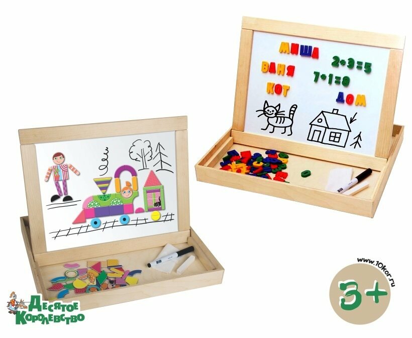 - ИГРАЕМ и РАЗВИВАЕМСЯ ВМЕСТЕ. Доска двусторонняя магнитно-маркерная с поддоном ДЕСЯТОЕ КОРОЛЕВСТВО.