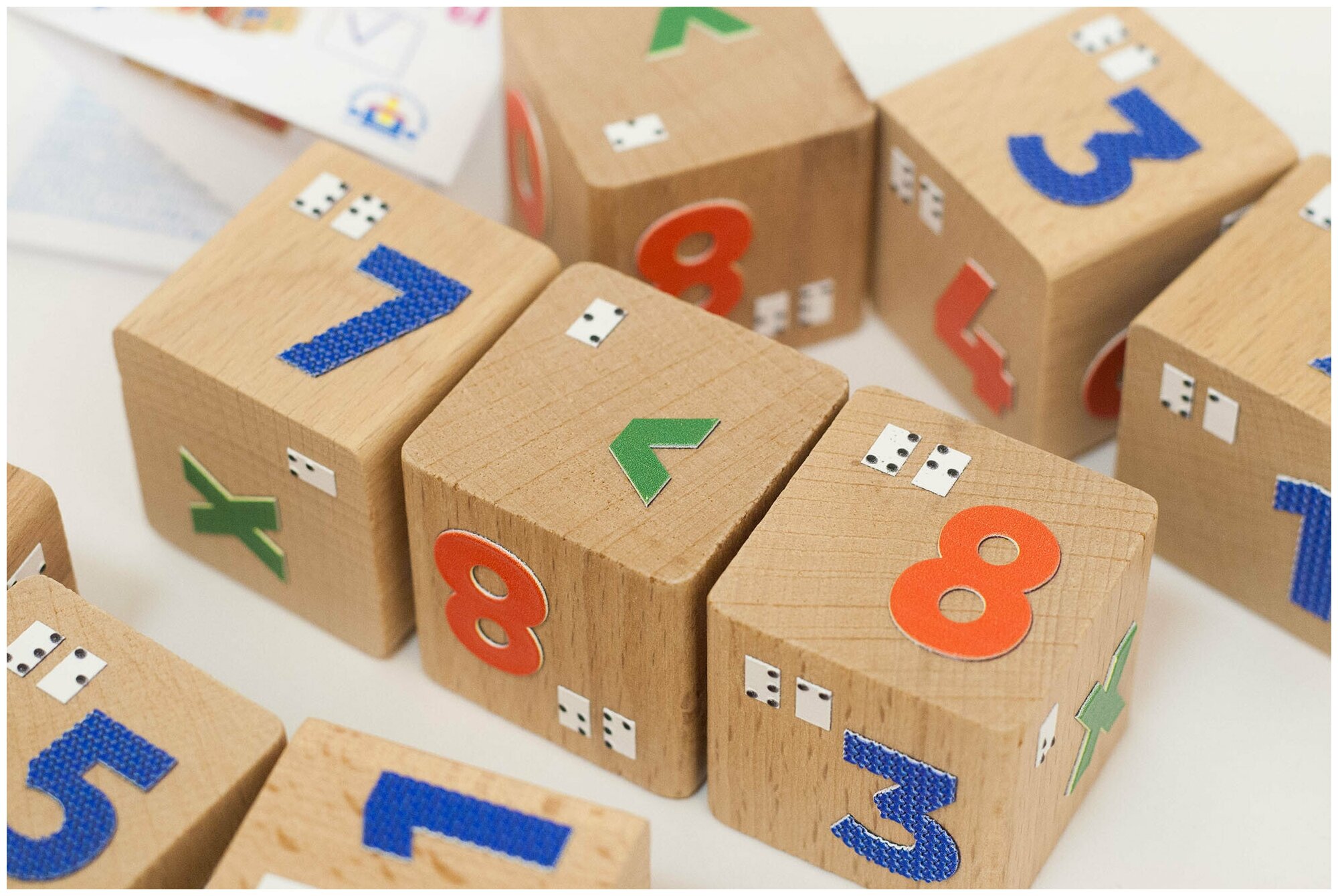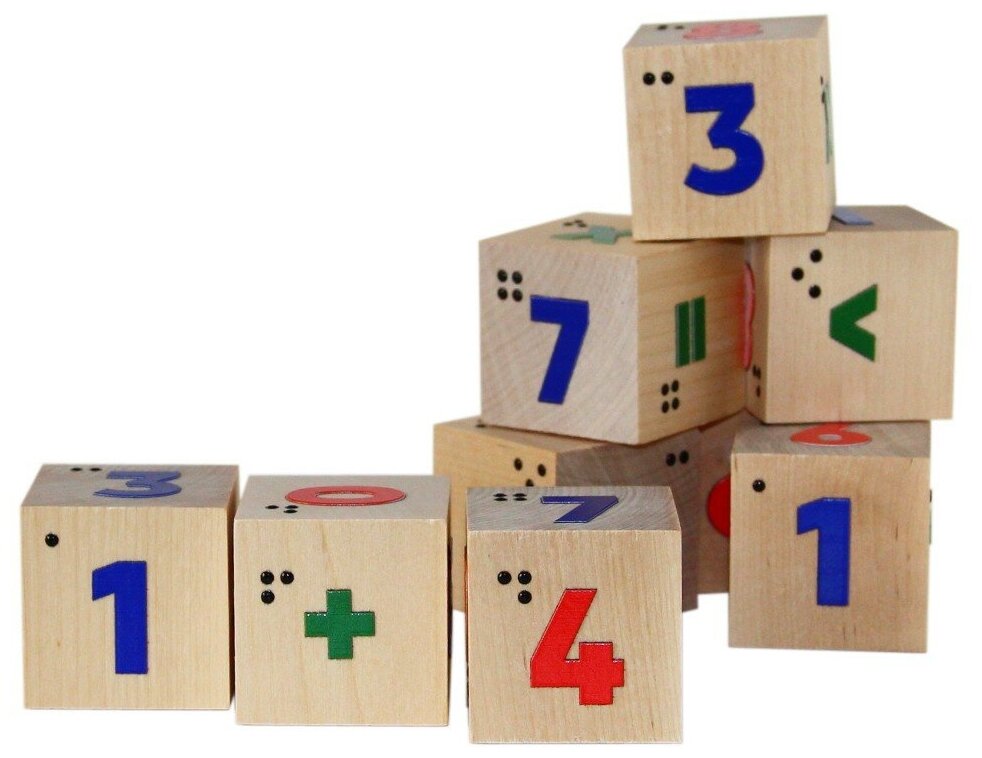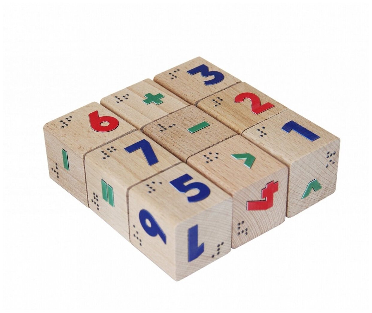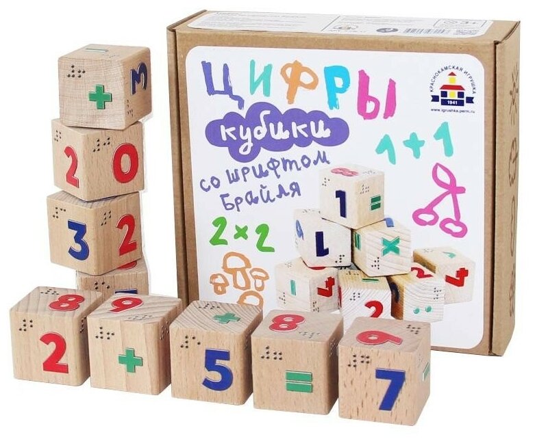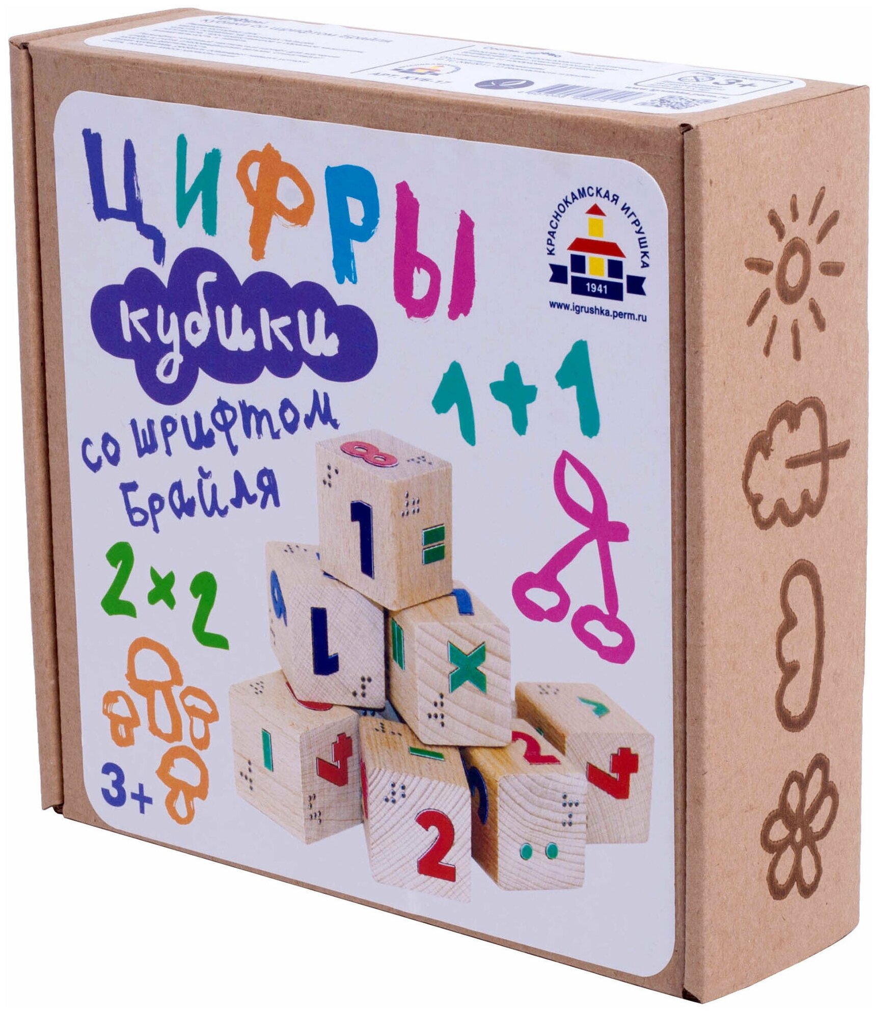 Деревянная игрушка Краснокамская игрушка Кубики Цифры со шрифтом Брайля