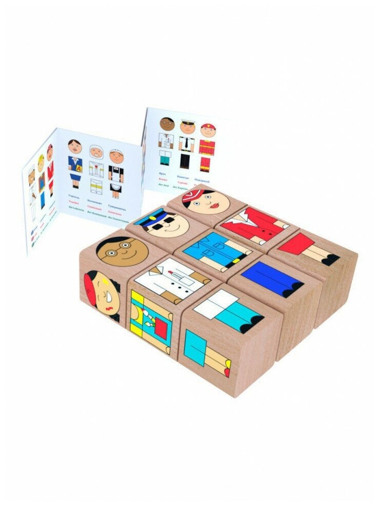 - Деревянные развивающие кубики от Краснокамская игрушка "Профессии", 9 шт
