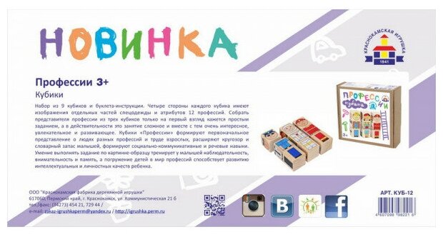 Деревянная игрушка Краснокамская игрушка Кубики Профессии