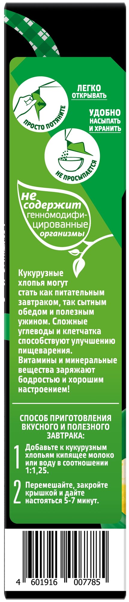 | Способ приготовления | Добавьте к кукурузным хлопьям кипящее молоко или воду в соотношении 1:1,25. Перемешайте, закройте крышкой и дайте настояться 5-7 минут. |