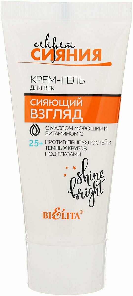 Крем для век Bielita Секрет сияния Сияющий взгляд эффективно разглаживает мелкие морщинки вокруг глаз, выравнивает рельеф кожного покрова, обеспечивает длительное увлажнение и питание.