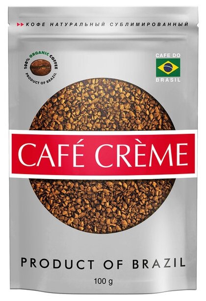 Кофе растворимый сублимированный CAFE CREME изготовлен из 100% натуральных зерен бразильского кофе высшего качества, произрастающего в горной местности Эспириту- Санту на юго-востоке Бразилии.