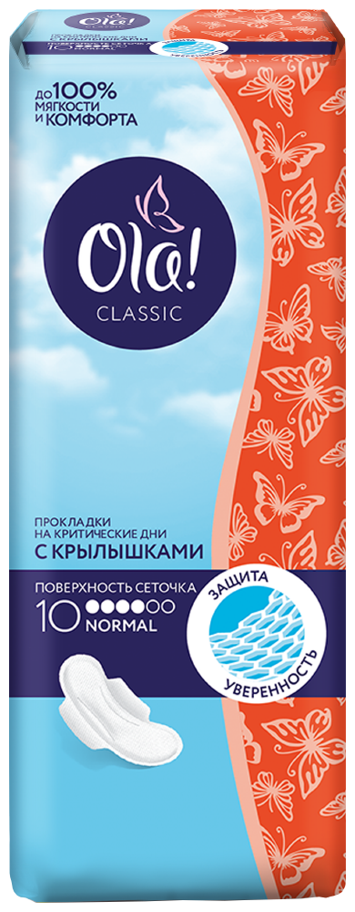 | Полное наименование | OLA! CLASSIC WINGS NORMAL Прокладки женские гигиенич. впитывающие поверхность сеточка 10 шт/упак. |