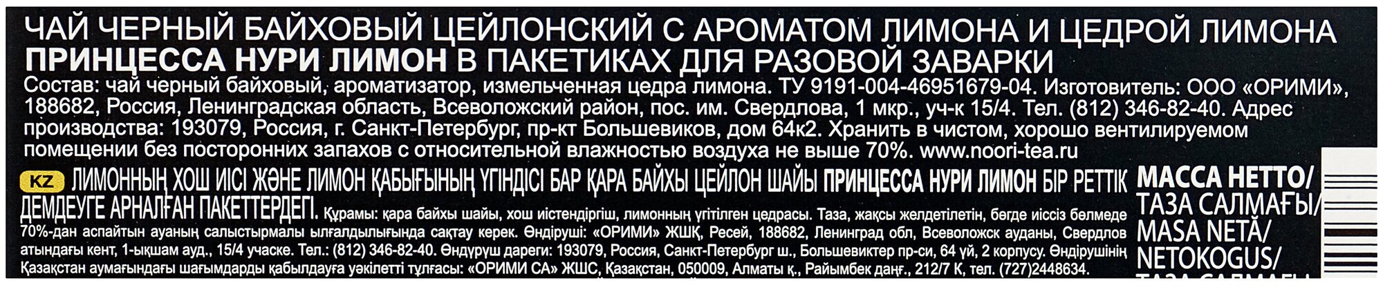 Чай черный Принцесса Нури "Яркий лимон" 25 пакетиков (0253-18-1)