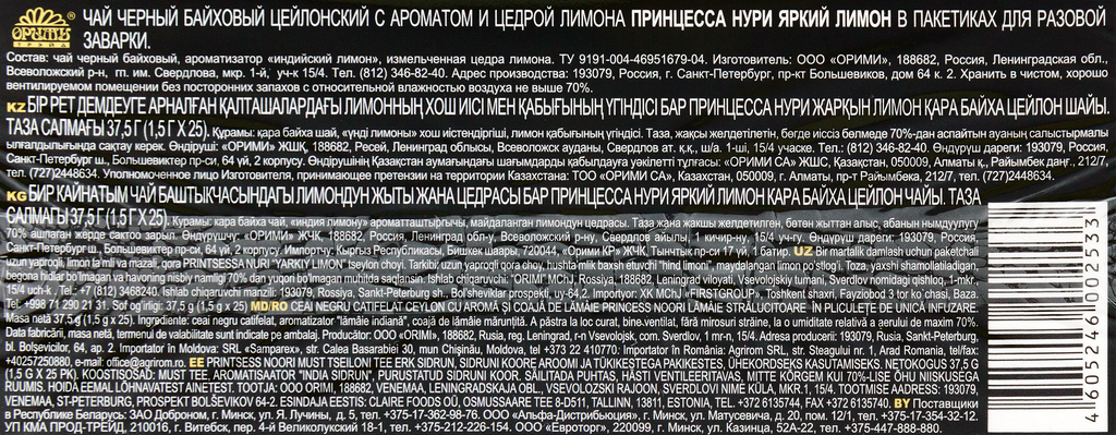 | Состав | чай черный байховый, ароматизатор "индийский лимон", измельченная цедра лимона |