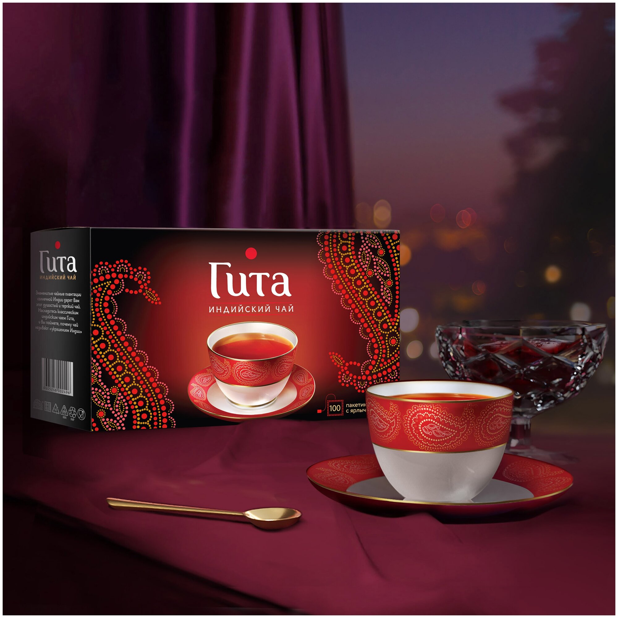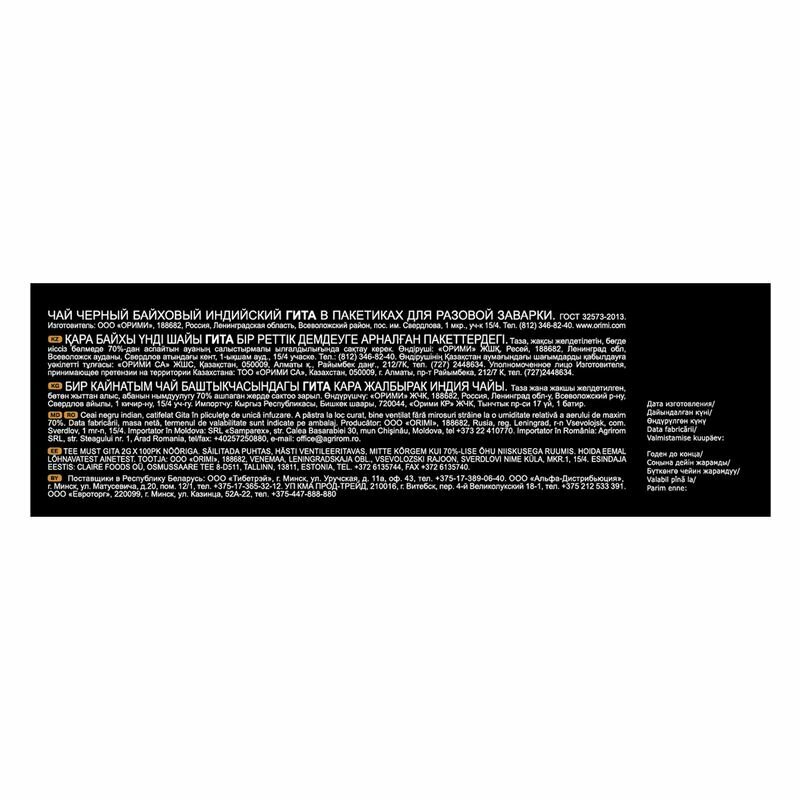 Черный чай Принцесса Гита Индия в пакетиках собран со знаменитых чайных плантаций солнечной Индии. Яркий цвет и приятный терпкий вкус сочетаются в этом чае с выраженным тонизирующим действием.
