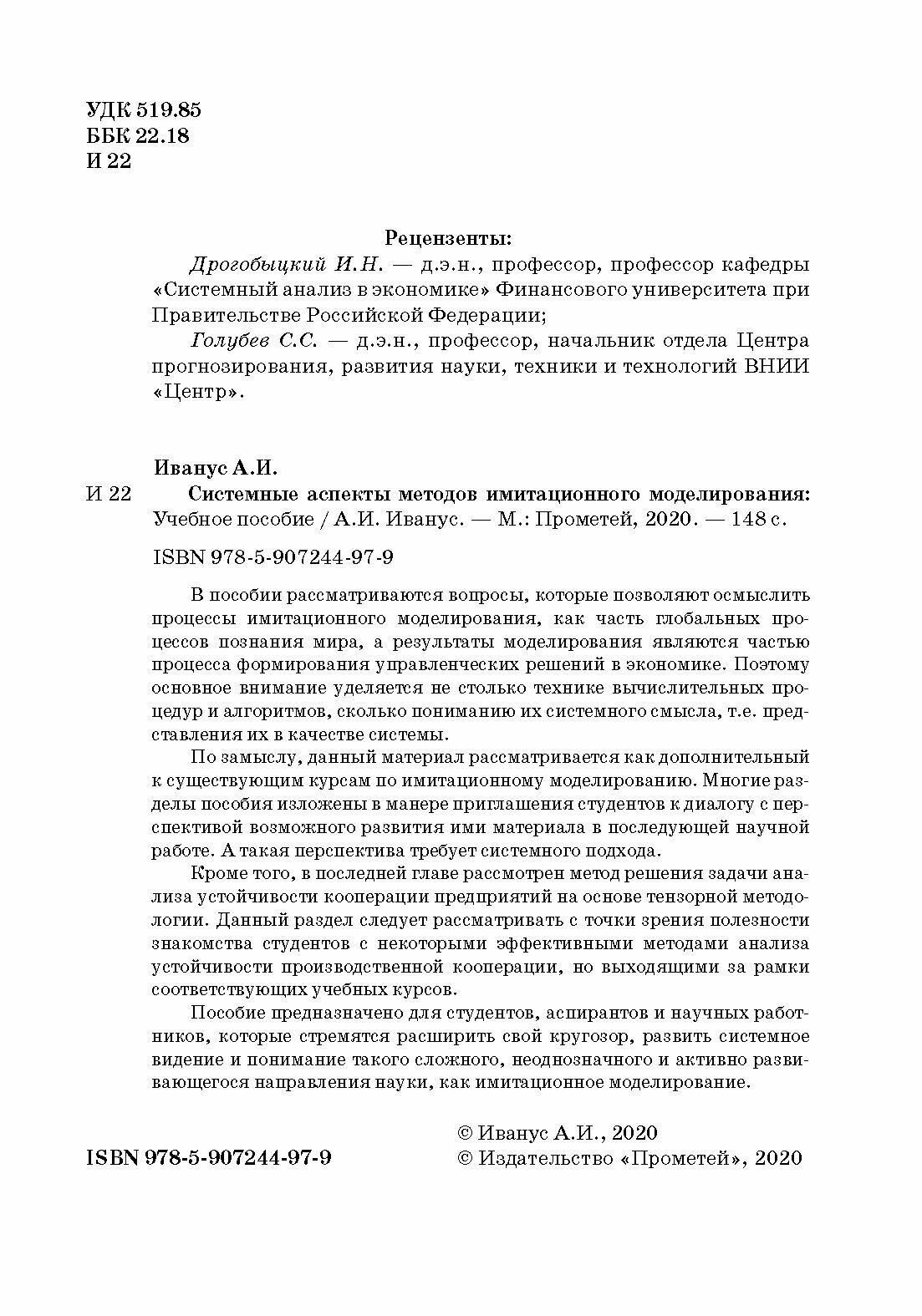 Сервис сравнения цен СкидкаГИД предлагает сравнить цены на товар «Книга: Системные аспекты методов имитационного моделирования (А. И. Иванус); Прометей, 2020»