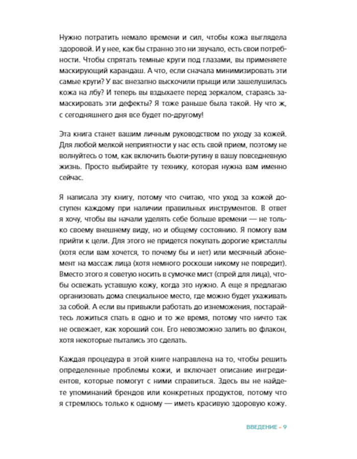 Книга содержит описания более 30 процедур для разных ситуаций и типов кожи, мейкап-туториалы, советы по поддержанию общего здоровья организма, а также расшифровку популярных ингредиентов, содержащихся в косметике. Основана на последних исследованиях в области дерматологии и ухода за кожей. Перед вами проверенный источник информации для всех, кто хочет выглядеть и чувствовать себя хорошо.