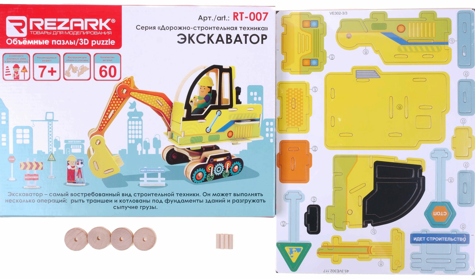 3D-пазл REZARK 60 деталей Сборная модель Дорожно-строительная техника Экскаватор