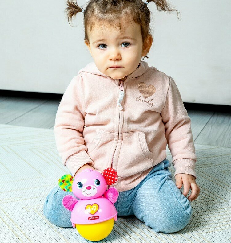 Игра с музыкальной неваляшкой-покатушкой не только развеселит малыша, но и поможет в развитии двигательной активности, слухового восприятия, тактильных ощущений. Предупреждение для родителей! Рекомендуется играть с неваляшками-покатушками из этой серии на полу. Следует беречь игрушку от удара и избегать падения ее с высоты стола, полки и т.д.!