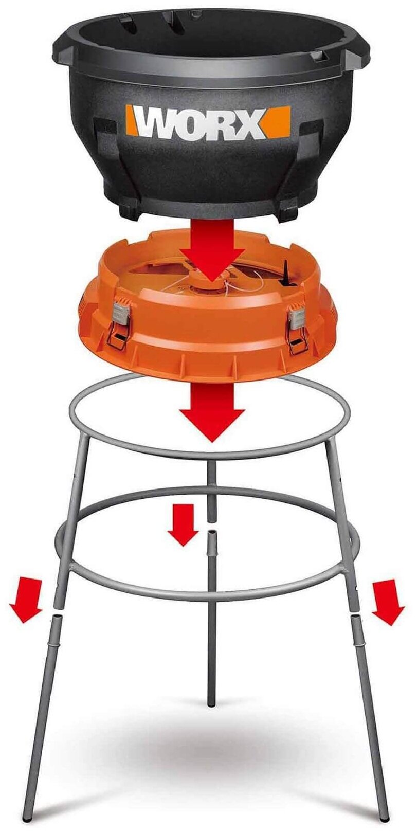 WORX WG430E - электрический садовый измельчитель с простой и компактной конструкцией. Прибор быстро режет листья, траву и другой садовый мусор, уменьшая его объем в 11 раз.