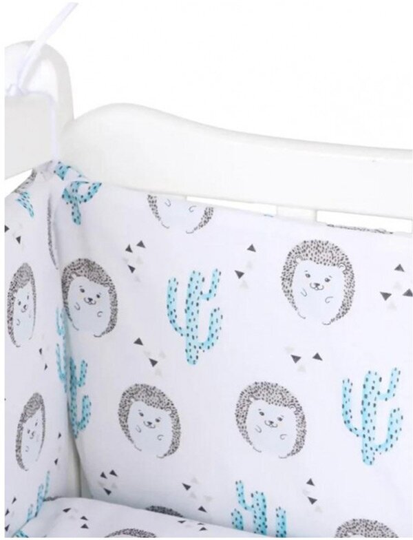 Отличные бортики! Светлые, ёжики похожи на настоящих и не травмируют психику ребёнка. В кроватке много места не занимают. Хорошие крепления. У прошлых ленты постоянно развязывались, здесь такой проблемы нет. Чехлы на молнии, без проблем можно снять и постирать. Хлопок качественный, сохнет быстро.