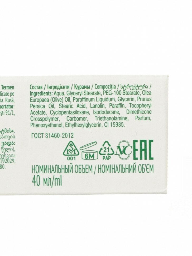 | Состав | парафин; вода; глицерин; ланолин; стеариновая кислота; феноксиэтанол; триэтаноламин; глицерил стеарат; токоферилацетат; парфюм; карбомер; жидкий вазелин; диметикон кроссполимер; персиковое масло; циклопентазилоксан; пэг-100 стеарат; этилгексилглицерин; изододекан; оливы европейской масло; краситель cl 15985 |