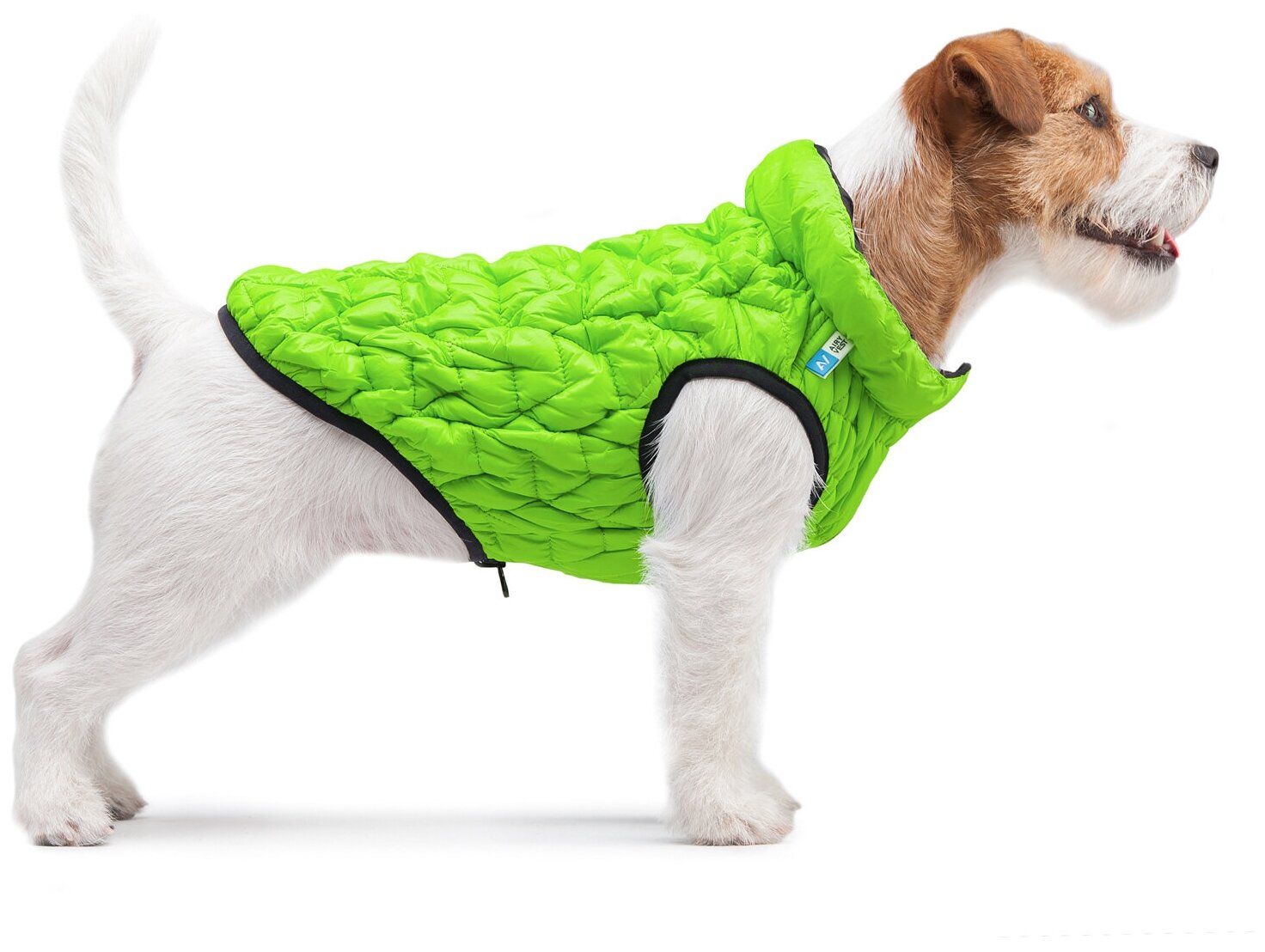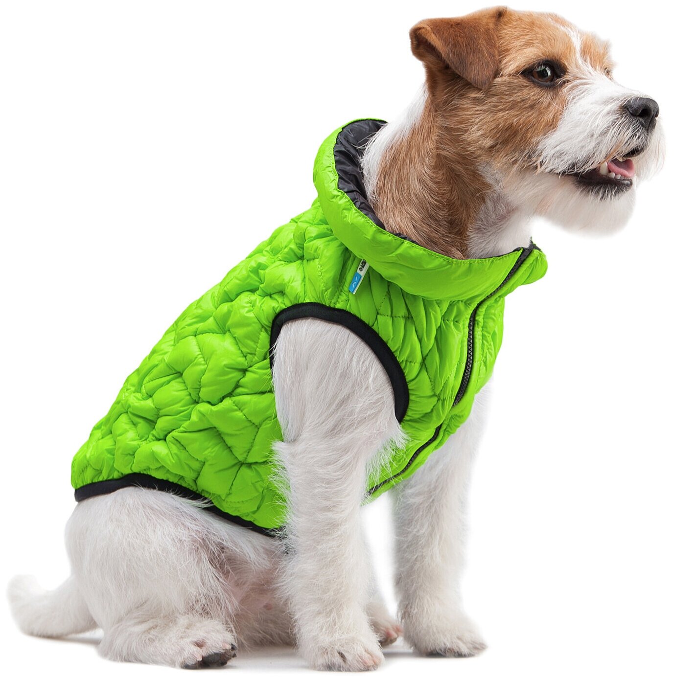 Теплая двусторонняя курточка для собак AiryVest UNI от компании Collar – уникальный, яркий и стильный аксессуар для прогулок с Вашим питомцем! Особенности:• Эластичная. Увеличивается в объеме до 20 %!!• Двусторонняя. Два цвета в одной курточке.• Сумочка для хранения и транспортировки.• Легко одевается благодаря специальной конструкции молнии (застёгивается сверху вниз). Один размер подходит для собак с разными обхватами груди и шеи. Снаружи ультралёгкая водоотталкивающая ткань из нейлона.Наполнитель - синтепон. Края курточки обработаны лайкрой, что предотвращает загибание курточки и задув ветра.Удлиненная спинка и плотный воротник-стойка обеспечивает защиту от непогоды.Курточка закрывает грудь и ребра собаки.Отличный вариант для собак с длинной шерстью - шерсть не путается в липучках и пуговицах, а легко убирается в гладкий материал жилетки и закрывается застежкой молнией! Пожалуйста, внимательно измеряйте размеры Вашего питомца.