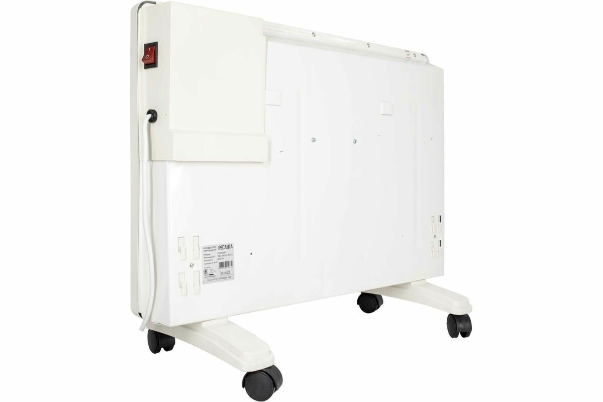 Конвектор ОК-2000E (LED) Ресанта, Напряжение 220-230В, Номинальная частота 50Гц, Потребляемая мощность (по режимам) 1000/2000 Вт, Защита от перегрева - есть, Автоматическое терморегулирование - есть, Тип управления - сенсорное, Вес нетто 6 кг, Класс защиты IPX4.