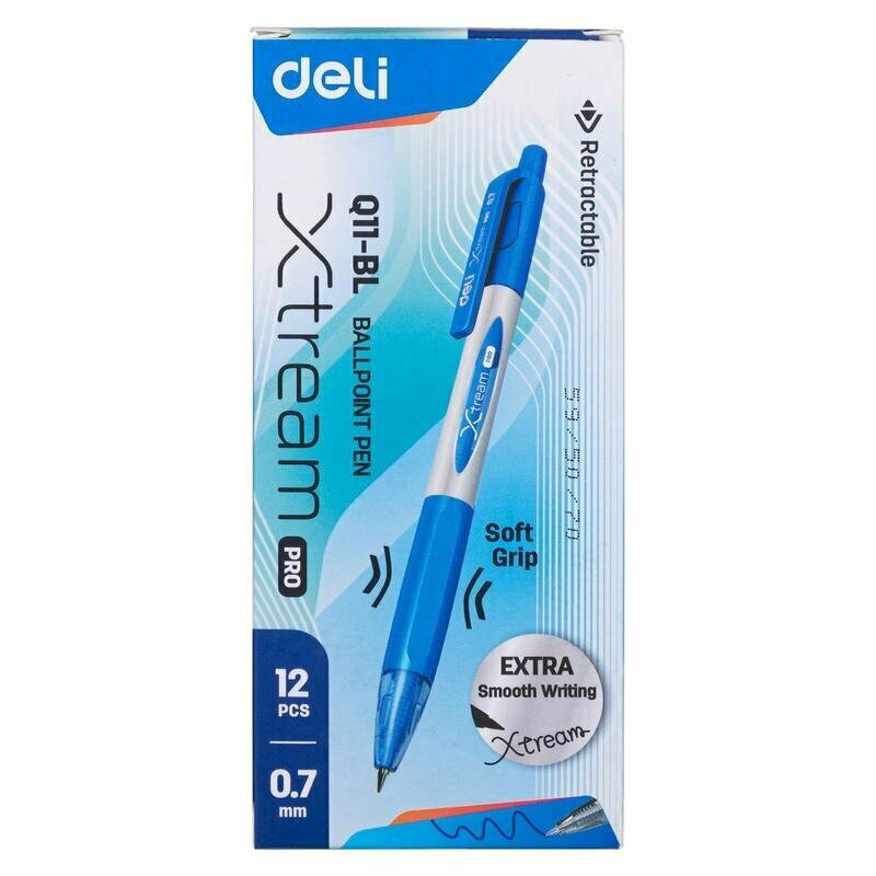 Упаковка шариковых ручек DELI авт. 0.7мм синий 12 шт./кор. EQ11-BL