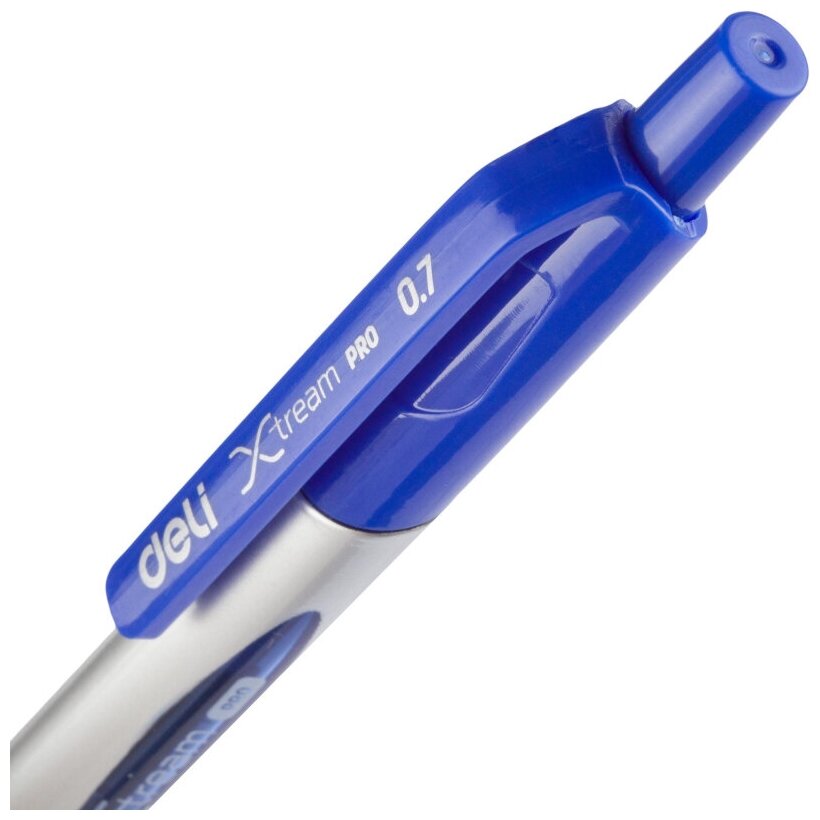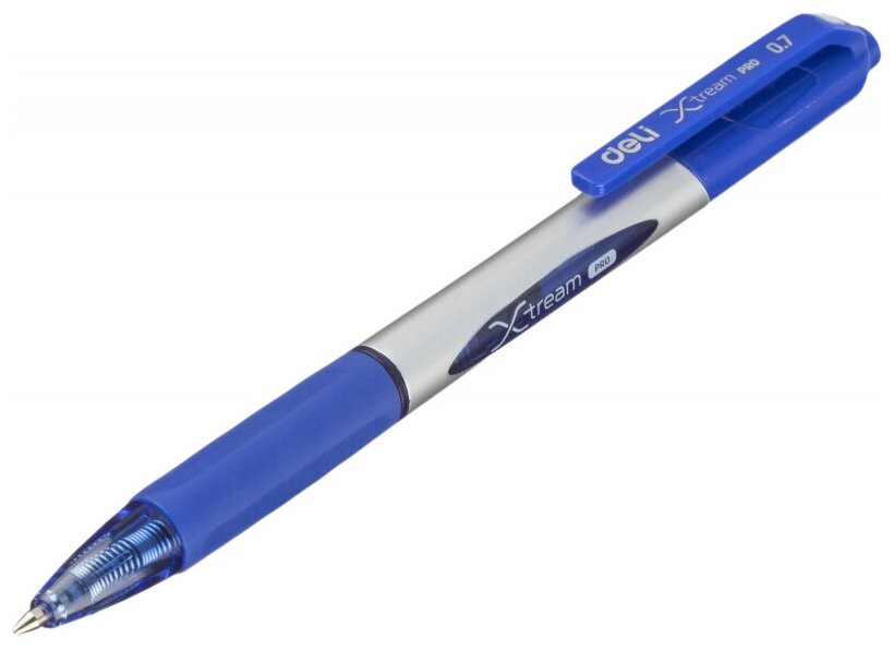 Автоматическая шариковая ручка Deli X-tream стильного строгого дизайна. Корпус пластиковый металлического цвета с удобной для письма мягкой зоной захвата. Цвет деталей корпуса повторяет цвет чернил. Выбирая DeliX-tream Вы приоберетаете ручку, которая ответит всем Вашим требованиям. Ручка имеет синий цвет чернил, который долгое время не выцветает. В производстве ручек используются чернила пониженной вязкости, гарантирующие необыкновенно мягкое и четкое письмо на любой бумаге. Диаметр пишущего узла составляет 0,7 мм, благодаря чему получается тонкая, аккуратная линия. Толщина линии письма 0.4 мм. Такая ручка будет уместна на любом учебном или офисном столе.