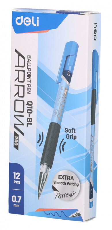 Ручка шариковая синяя Deli Arrow с колпачком и со стандартным типом пишущего узла. Шариковая ручка в пластиковом корпусе с удобной для письма мягкой зоной захвата создаст дополнительный комфорт при длительном использовании. Цвет деталей корпуса повторяет цвет чернил. В производстве ручек используются чернила пониженной вязкости, обеспечивающие необыкновенно мягкое и четкое письмо на любой бумаге. Диаметр пишущего узла составляет 0.7 мм, благодаря чему получается тонкая, аккуратная линия. Такая ручка будет уместна на любом учебном или офисном столе. Размер ручки 146х10х14 мм.