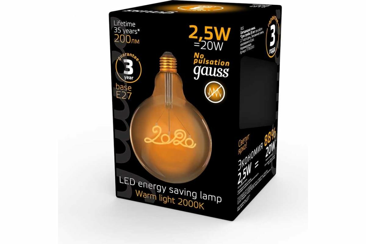 Светильник Gauss Лампа Filament LED G125 E27 2.5W 200lm 2000K